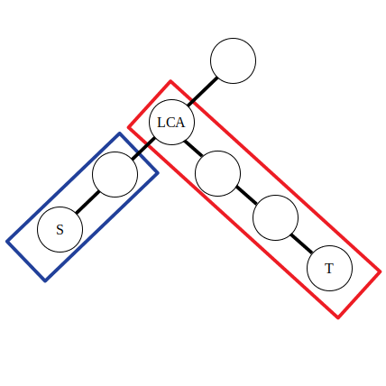 if (fa[x][k] != fa[y][k]) x = fa[x][k], y = fa[y][k];