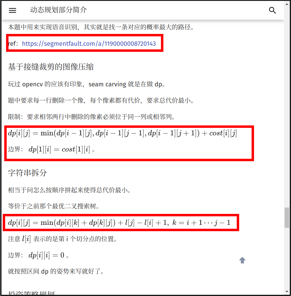 一节,并在原句后面加上脚注,而不是直接给出链接。同时一定要避免使用 LaTeX 公式表达代码,上图中两个中括号就是不规范的写法。我们建议使用 dp(i,j)