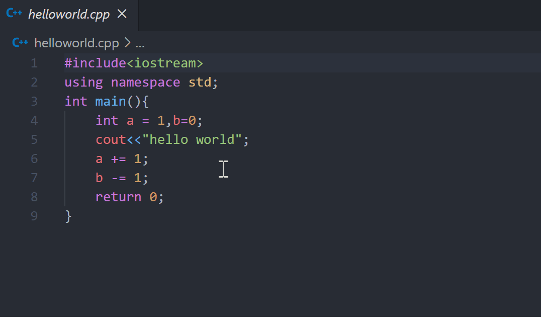 在 VS Code 中新建一份 C++ 代码文件,按照 C++ 语法写入一些内容(如 int main(){}